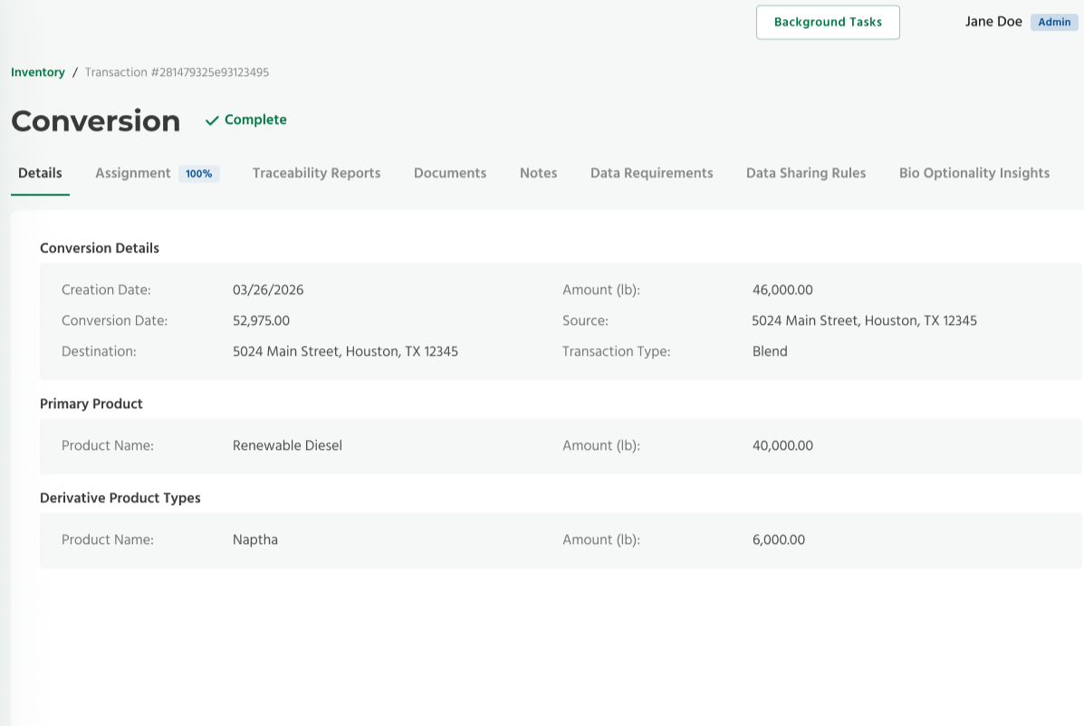 From raw materials to finished fuels, complex blends to yield loss—Veriflux360 scales with your operations and simplifies the math behind the scenes. Whether you’re blending waste oils, managing conversion factors, calculating yield losses, or tracking multiple end uses, Veriflux360 handles the math and recordkeeping.